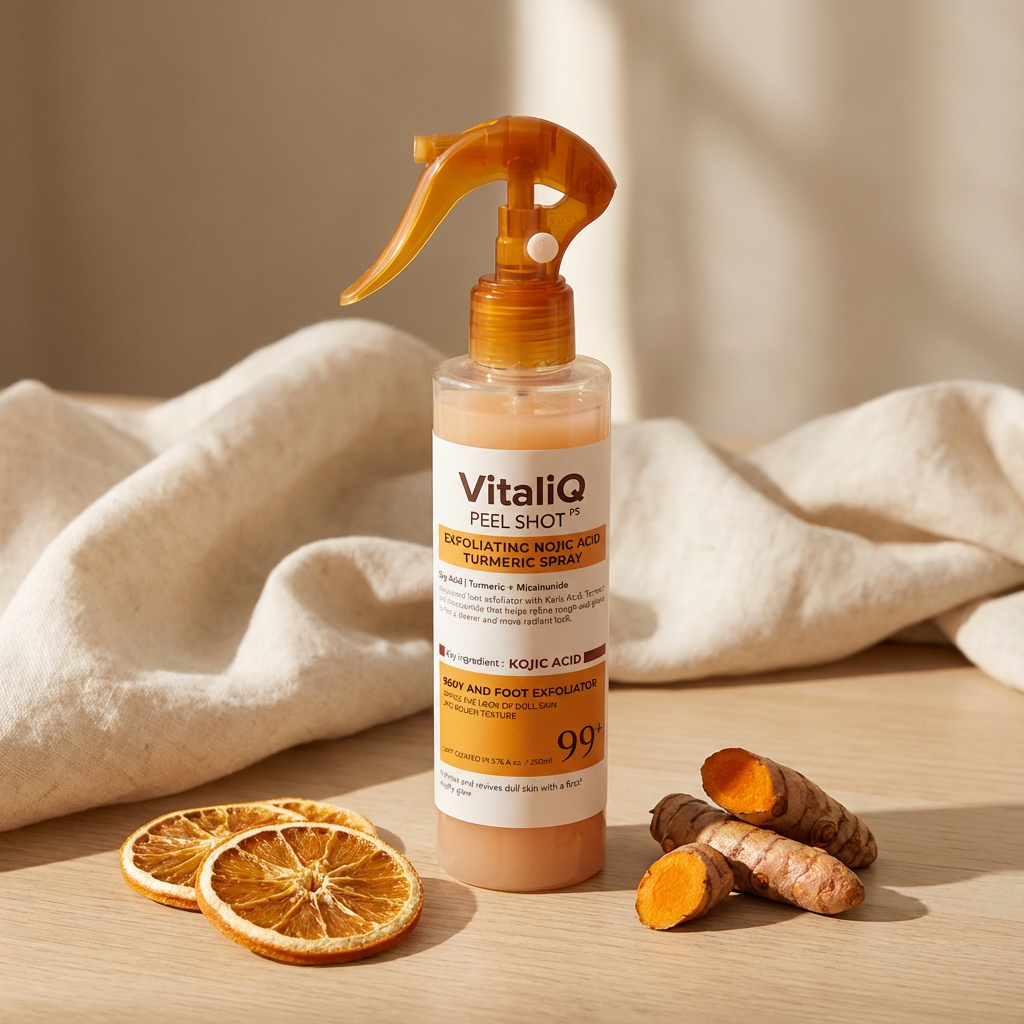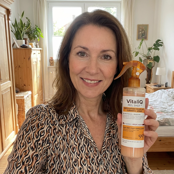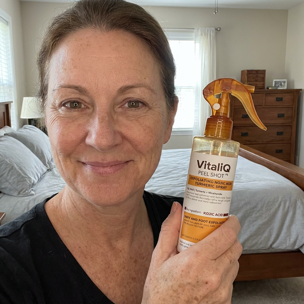 Rachel H. January 2025Verified BuyerBest Money I've Spent on SkincareI've easily spent $500+ on body products trying to fix my KP and dark spots. Nothing worked until VitaliQ. The combination of exfoliation and brightening in one product is genius. My skin looks and feels better than it has in a decade. Smooth texture, even tone, no more bumps. If you're on the fence, just try it. You've probably already wasted money on products that don't work. This one actually does.Kojic Acid Turmeric spray - Dark Spot Formula Was this helpful? 11 0