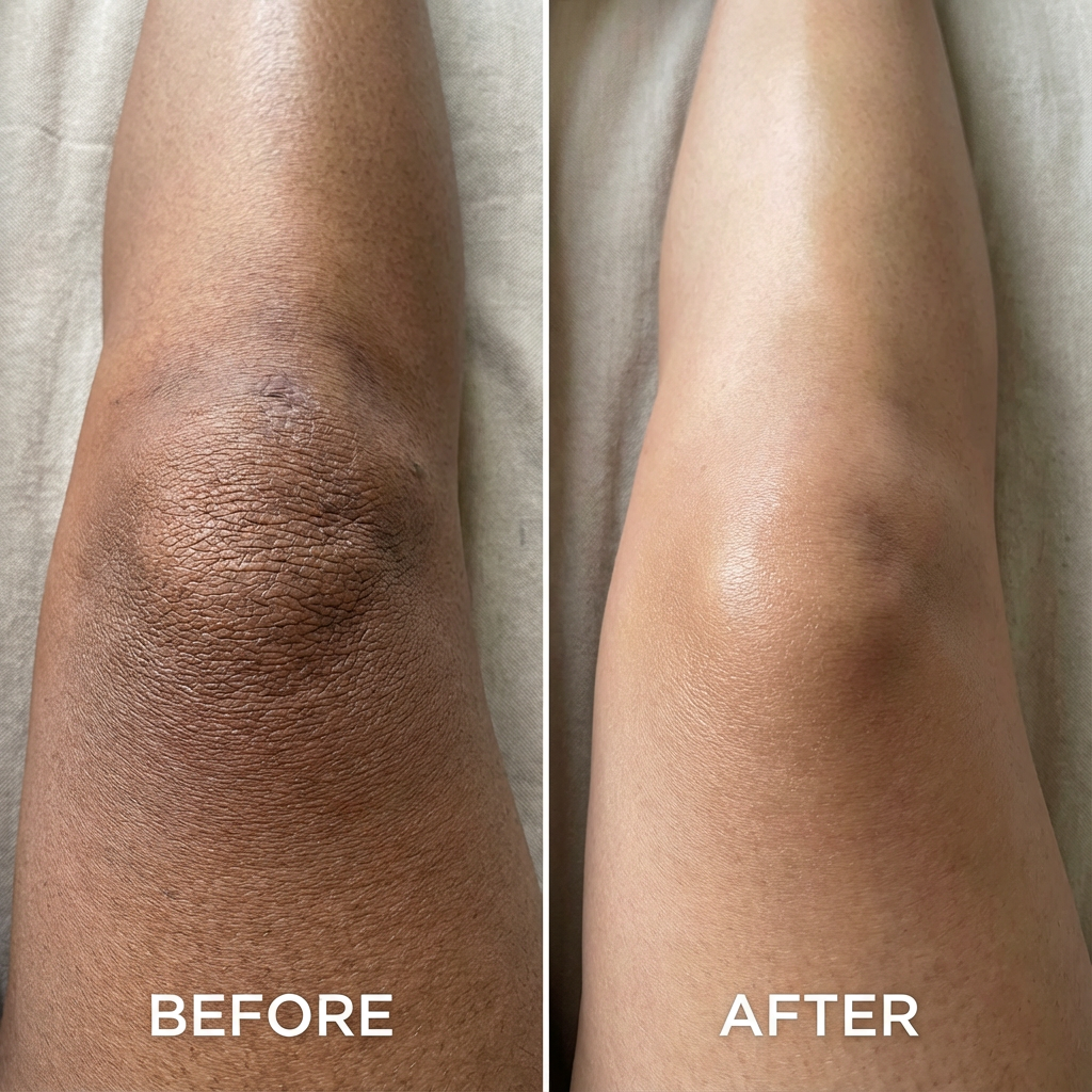 2-3 months: This is when people see dramatic transformation. Keratosis pilaris bumps are significantly reduced or gone. Dark inner thighs, elbows, and bikini area lighten considerably. Your body skin actually glows.