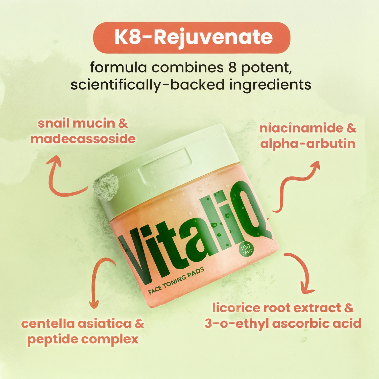 I’ve been using the VitaliQ toning pads for about a week now, and I have to say they’ve already exceeded my expectations. What I love most is that they’re not just a simple toner — their advanced K-Beauty formula really makes a difference on my skin. From the first few days, I noticed my skin looked more hydrated and even-toned, especially with less redness and acne marks that used to bother me. I’ve been using the VitaliQ toning pads for about a week now, and I have to say they’ve already exceeded... I’ve been using the VitaliQ toning pads for about a week now, and I have to say they’ve already exceeded my expectations. What I love most is that they’re not just a simple toner — their advanced K-Beauty formula really makes a difference on my skin. From the first few days, I noticed my skin looked more hydrated and even-toned, especially with less redness and acne marks that used to bother me.