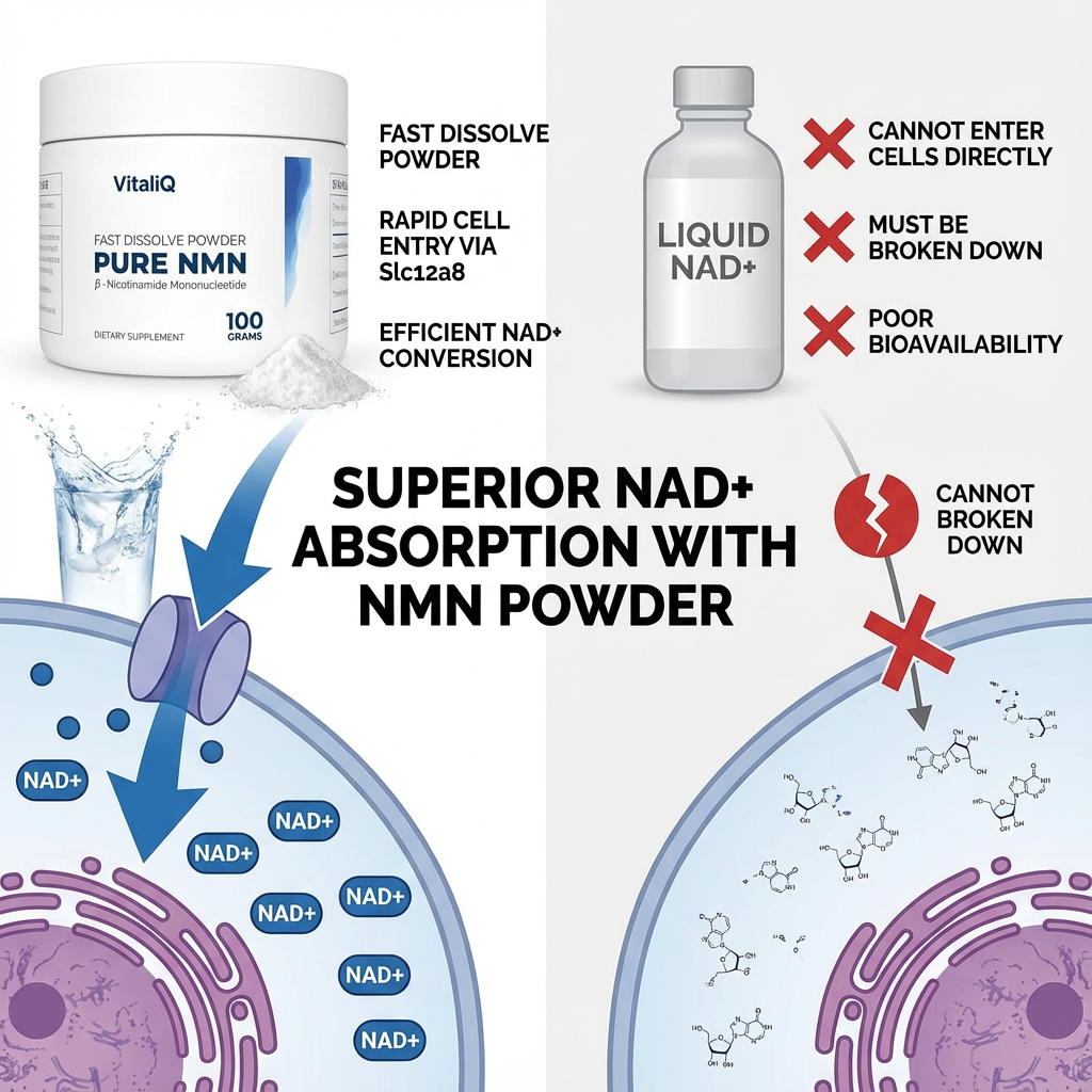 VitaliQ delivers pharmaceutical-grade NMN in a format that actually gets absorbed. It's not magic. It's basic cellular biology. And it works exactly as the research suggests it should.